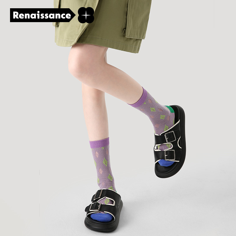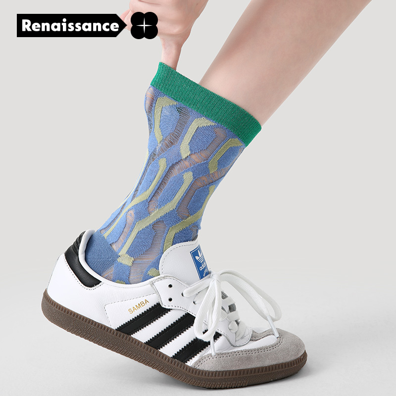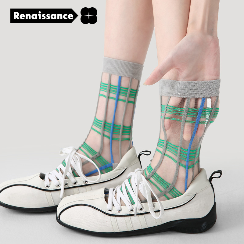 文艺复兴设计师原创袜子女25年春夏卡丝网眼袜薄款 透气堆堆中筒袜