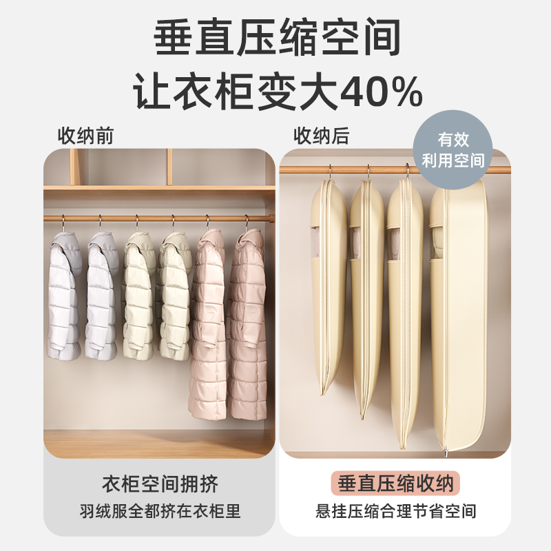 羽绒服专用收纳袋挂式 衣柜衣物压缩整理袋家用透明衣服大衣防尘罩
