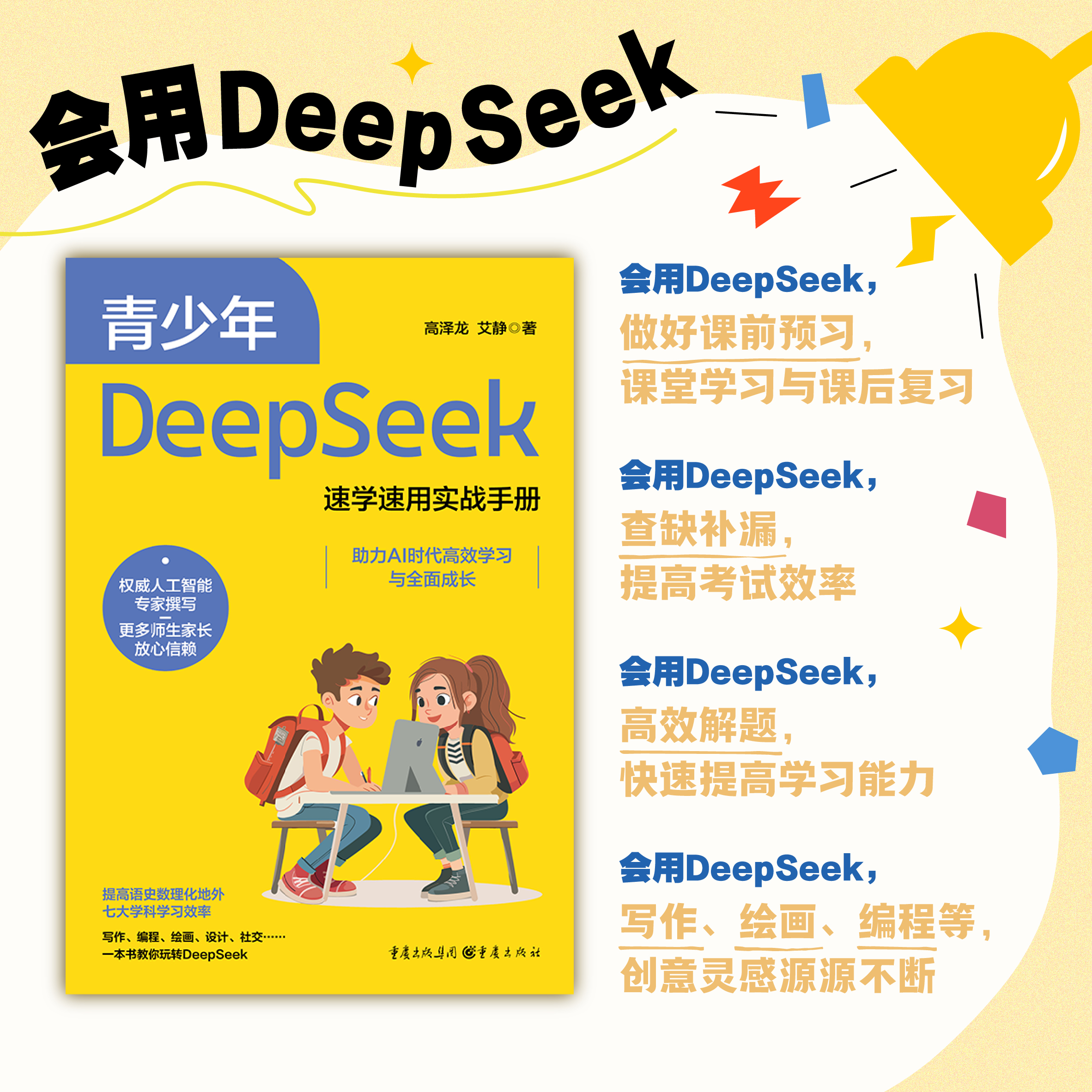 青少年DeepSeek速学速用实战手册 学生用书教青少年学习DeepSeek工信部与科技部专家联袂创作国家AI标准起草提高学习效率一本通