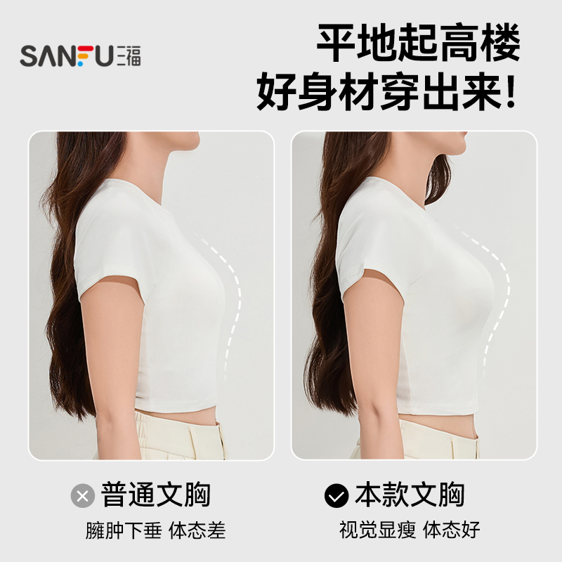 三福中厚杯无钢圈聚拢文胸新款 性感前扣蕾丝交叉带美背抗菌内衣女