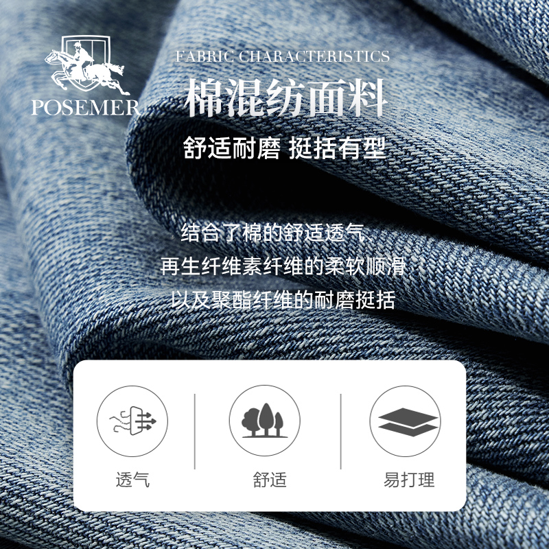 男士 新款 长裤 挺括有型牛仔裤 舒适 Posemer 潮流时尚 堡马2025夏季