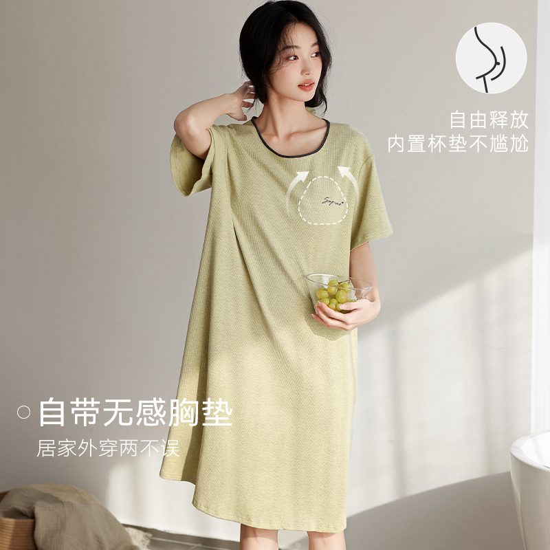 棉绸睡衣裙慵懒风莫代尔家居服 薄款 猫人带胸垫睡裙女2025新款 夏季