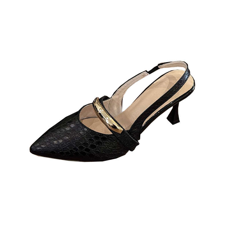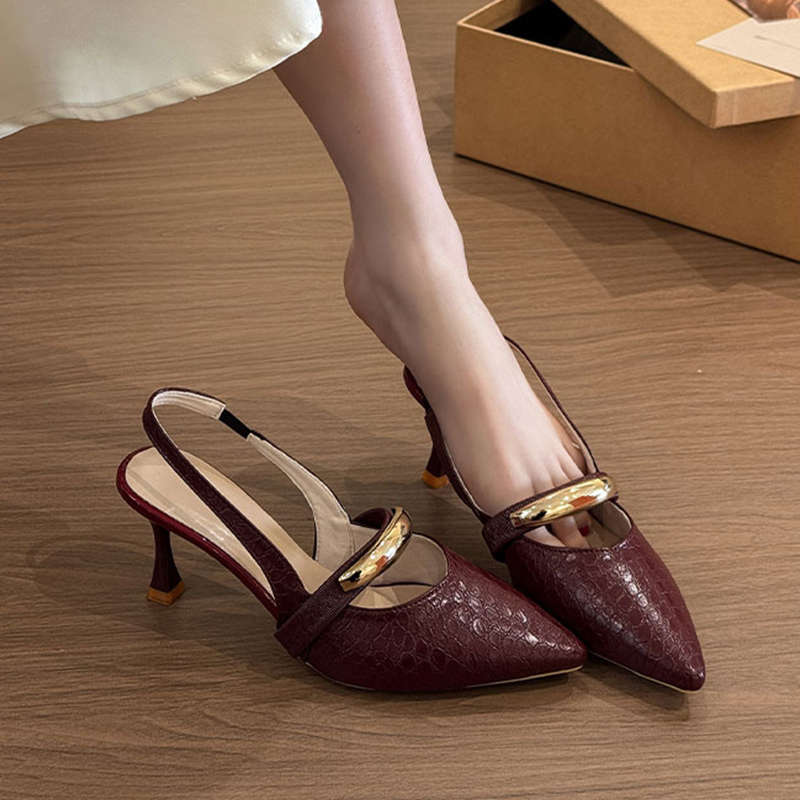 高级感时髦包头后空高跟鞋 新款 女2025年夏季 气质尖头银扣细跟凉鞋