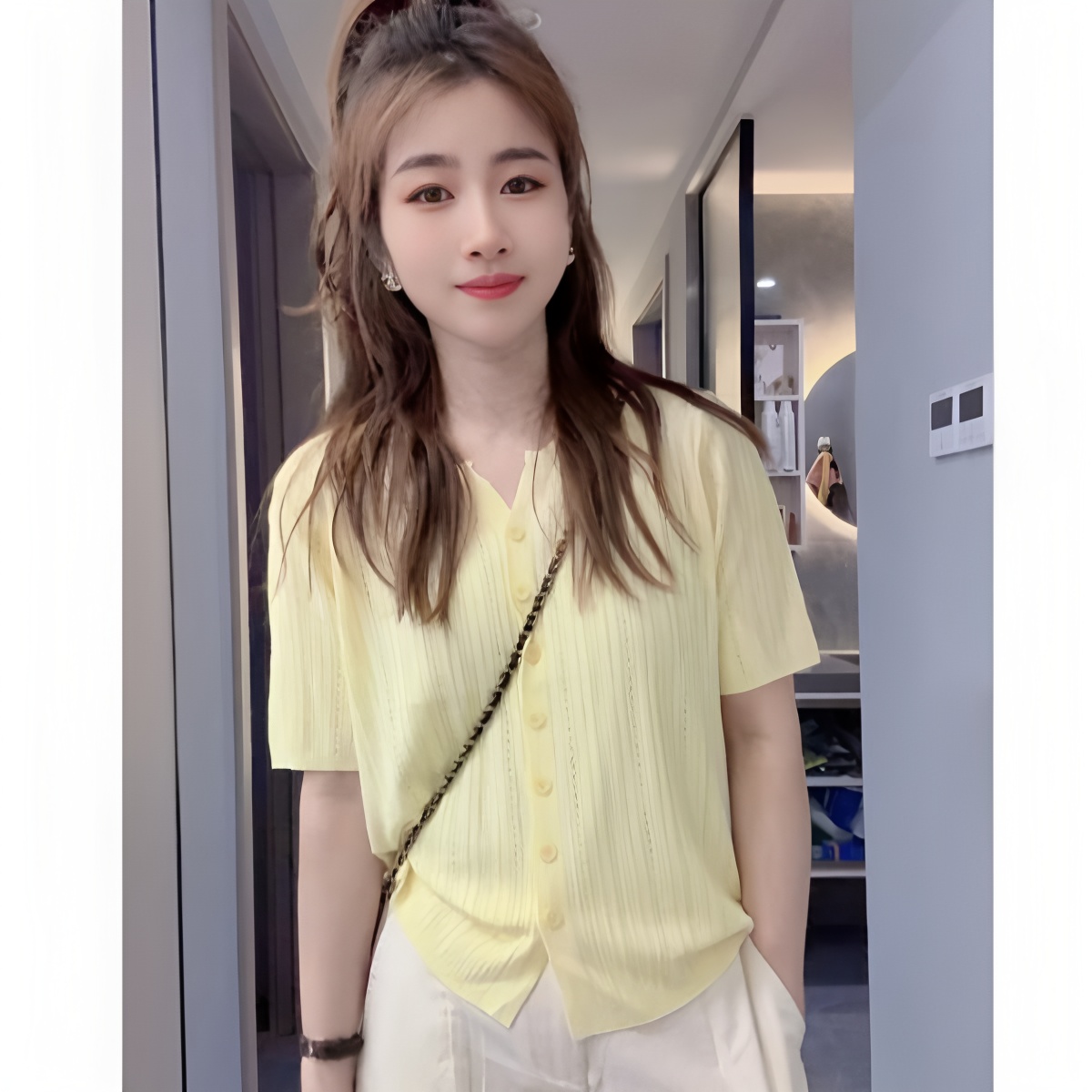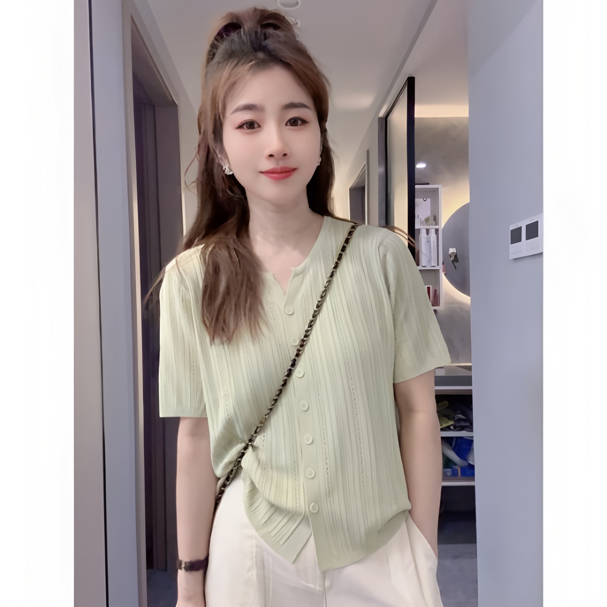 气质减龄针织衫 V领冰麻丝短袖 宽松显瘦薄款 2025新款 上衣 T恤女夏季