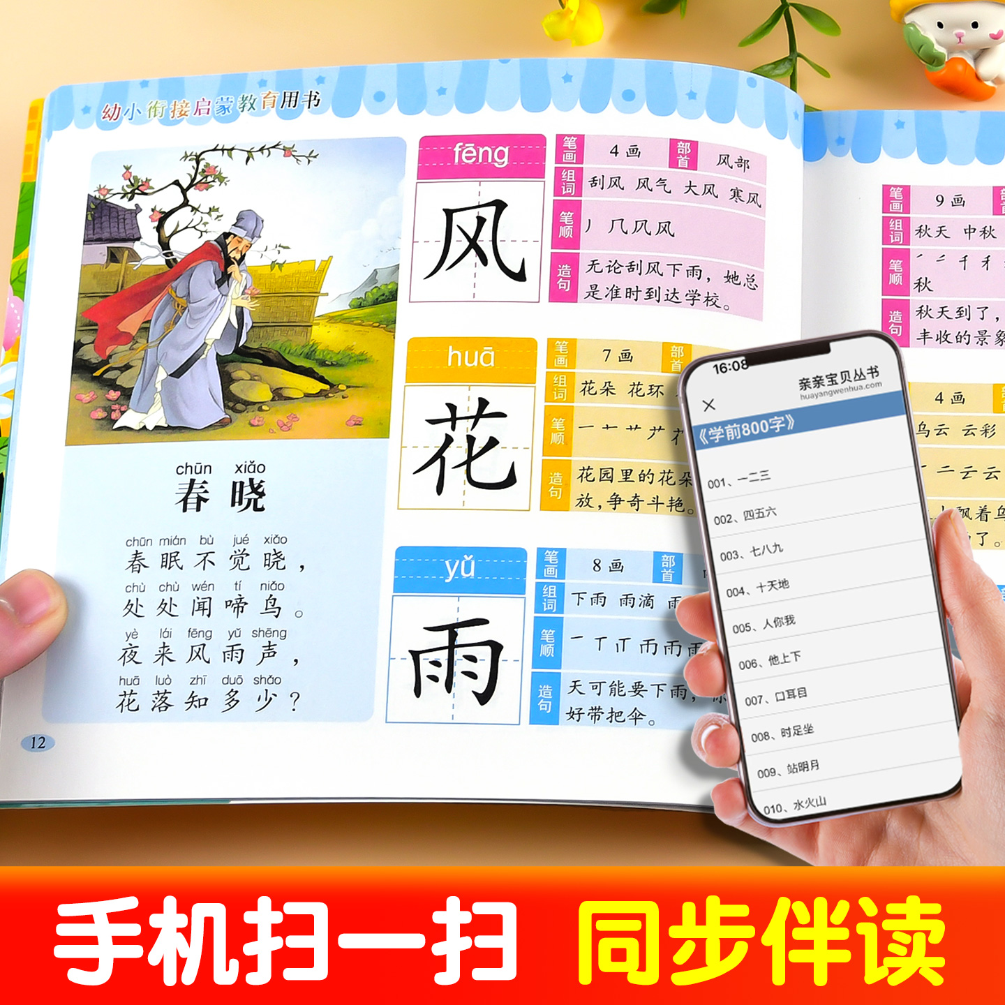 学前识字800个看图识字书籍带笔画笔顺词组造句唐诗儿歌谜语彩图拼音4 6岁宝宝识字学认汉字早教启蒙认知幼小衔接幼儿园小学