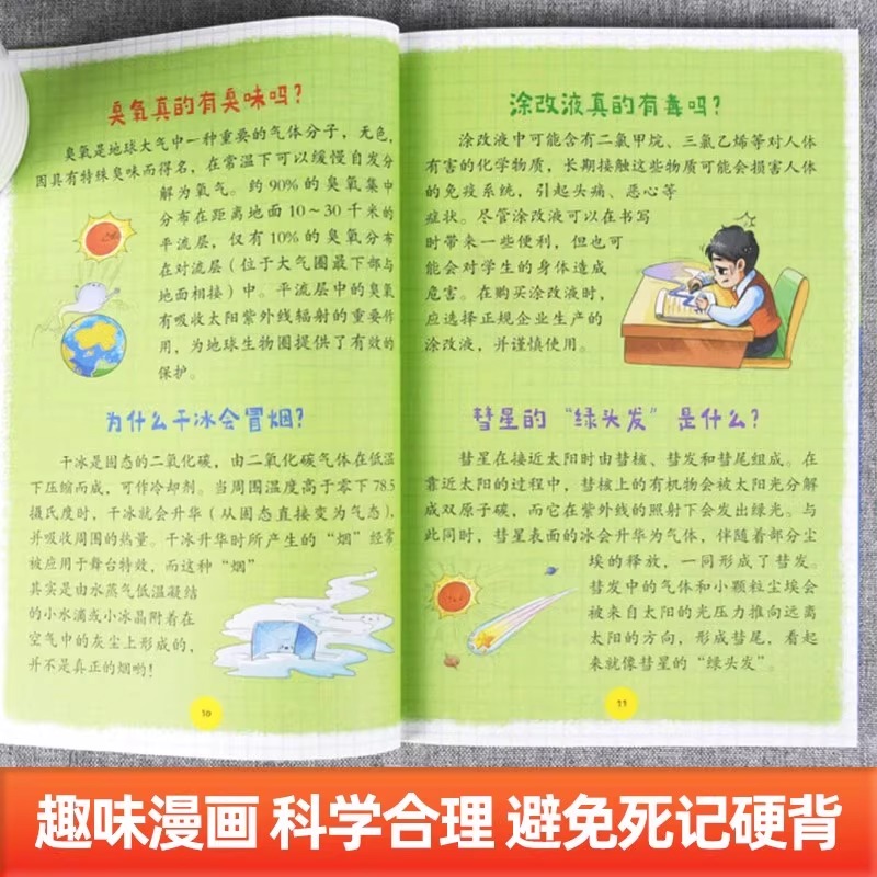 书籍适合儿童看 数学物理化学常识大全百科小学二三四五六年级阅读课外书必读正版 趣味漫画课本里面 漫画书启蒙书 全3册