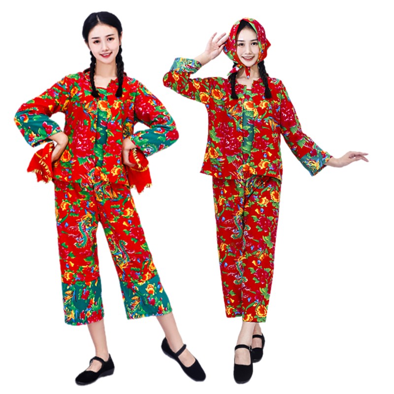 东北大花布衣服村姑女二人转演出服搞笑姐妹装 广场舞蹈秧歌服套装