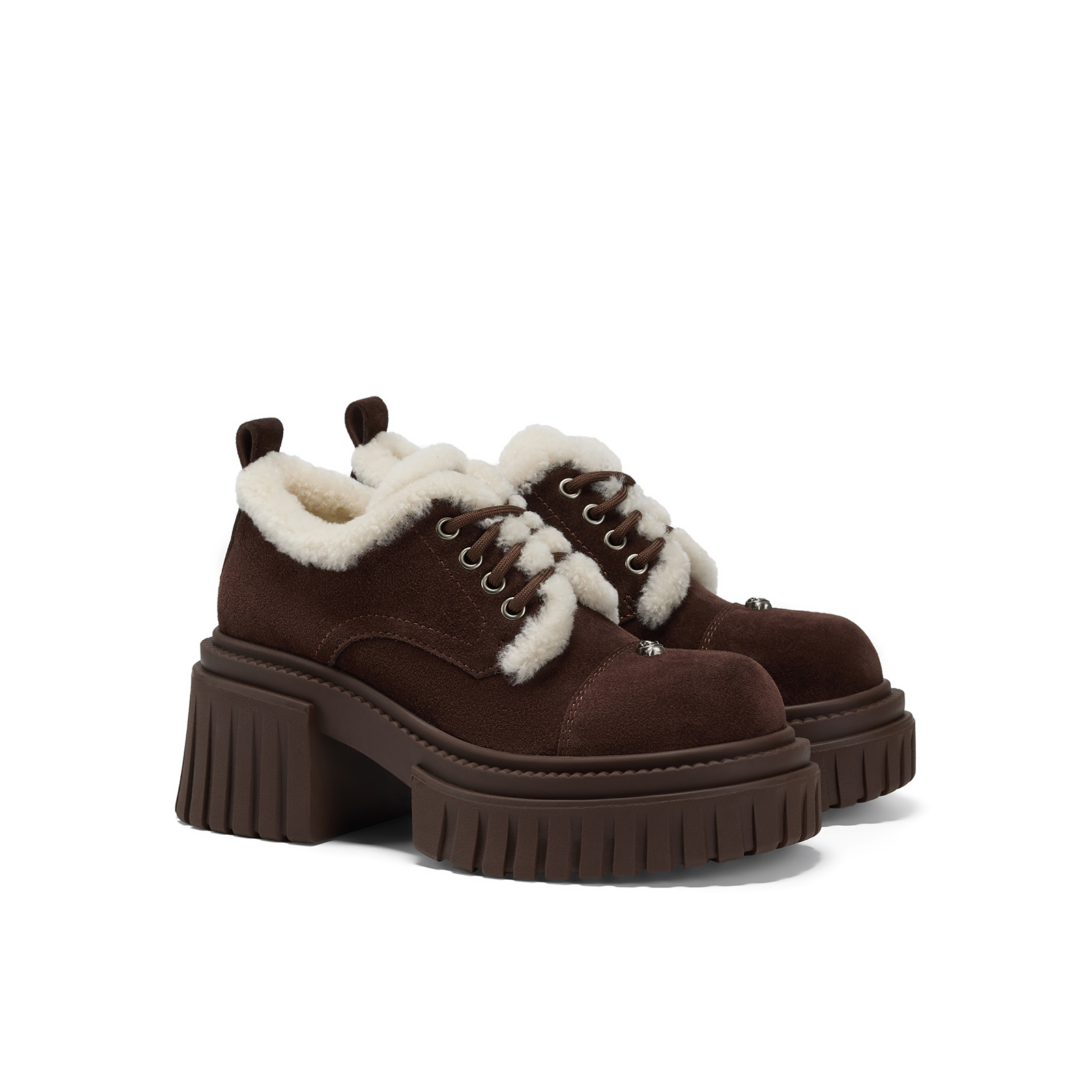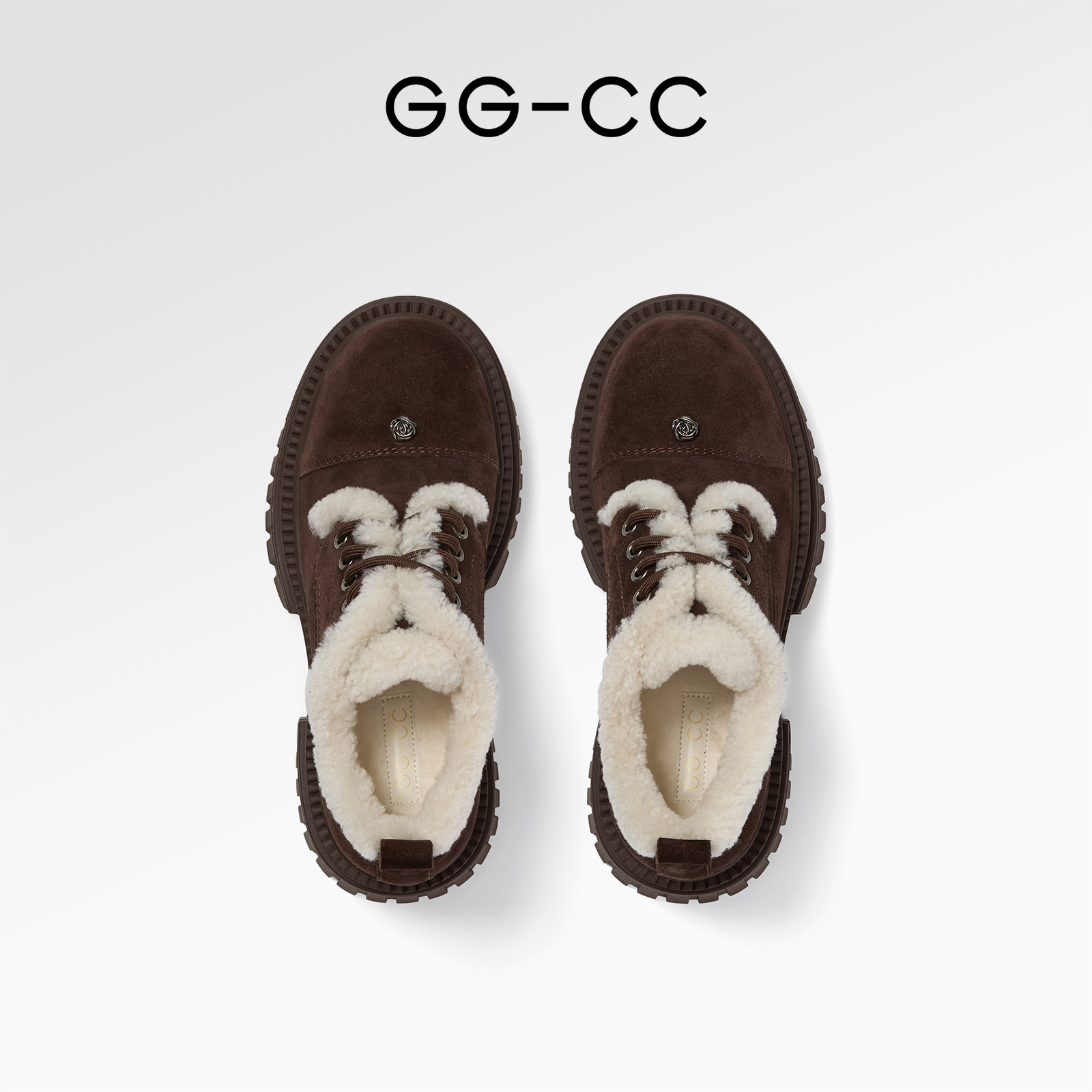 翻毛保暖毛毛棉鞋 厚底加绒乐福鞋 荒漠玫瑰GGCC冬季 女 双11预售