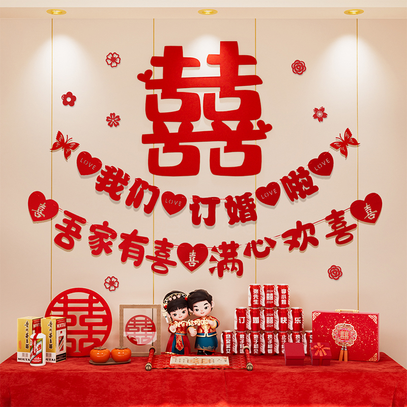 订婚装 饰摆件布幔气球线帘场景氛围 扮布置套餐结婚背景挂布kt装