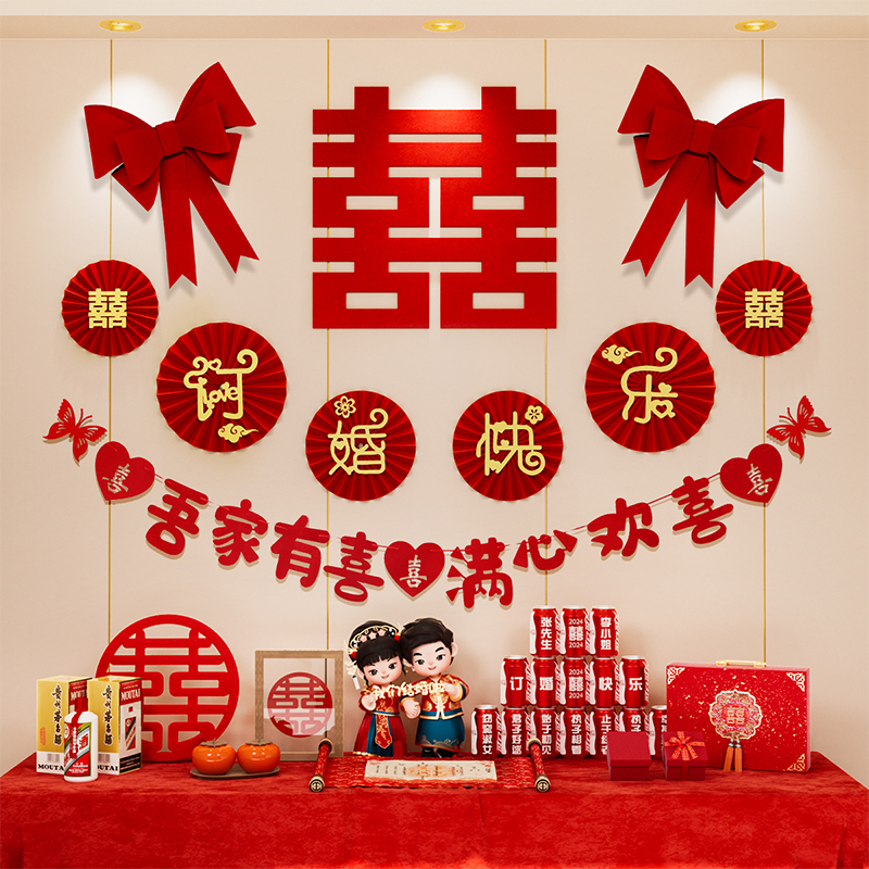 骆易家卧室婚房布置套餐喜字贴主卧装 扮 饰结婚男方女方新房拉花装
