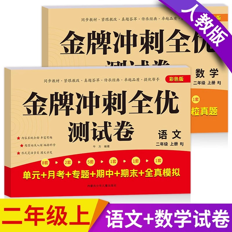 二年级上册试卷测试卷全套语文数学人教版 期中期末冲刺100分全优卷教材同步训练习册专项练习题模拟考试卷子 小学生2年级上学期单元