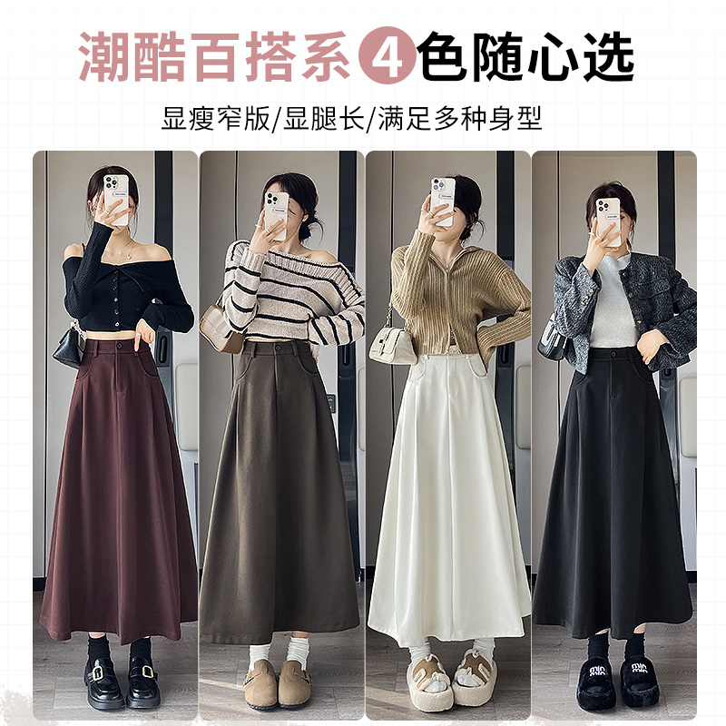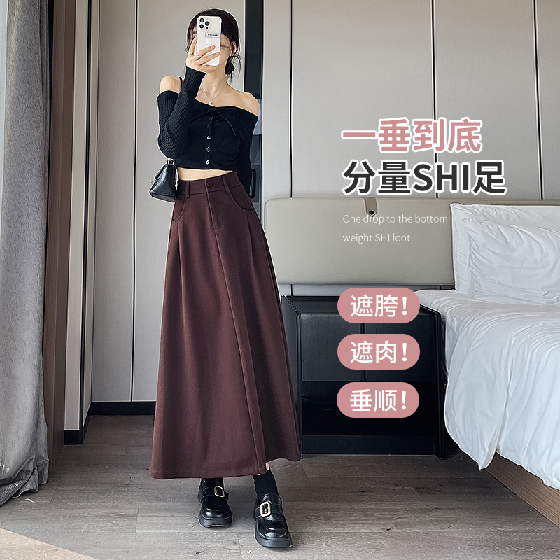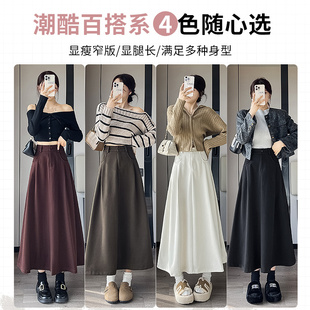 日系复古超好看半身裙子女士春秋装 小个子高腰显瘦夹棉A字裙 新款