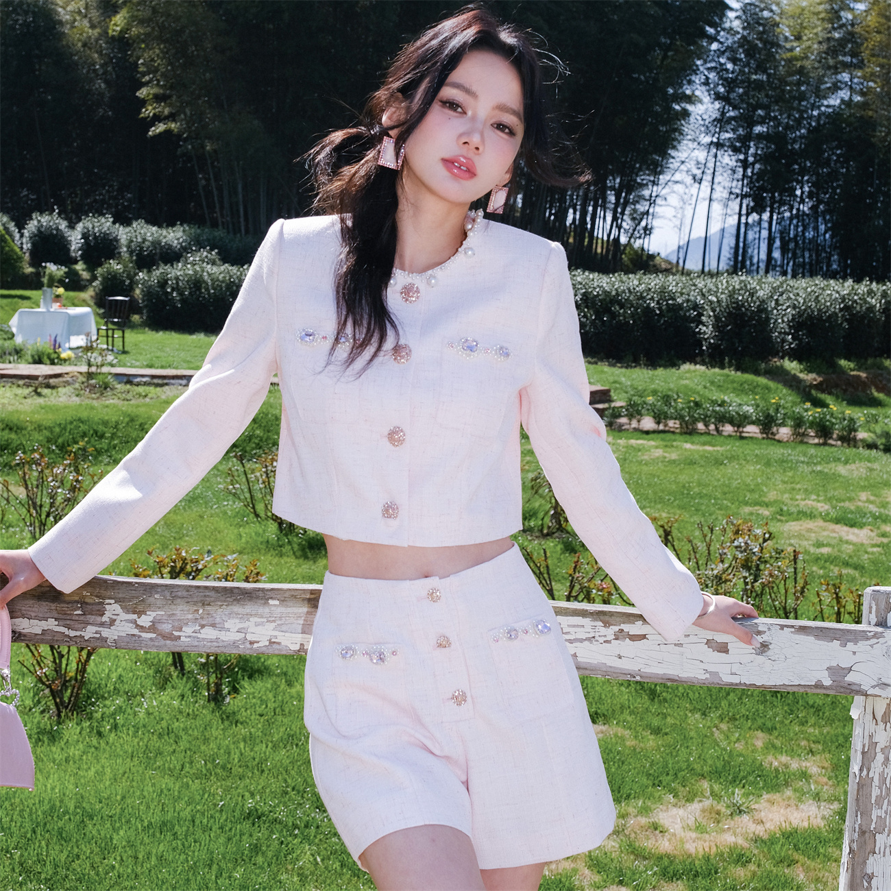 sparrow官方旗舰店款 Aimme 新粉色珍珠小香风外套短 清货折裤
