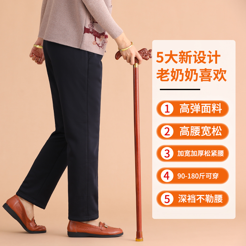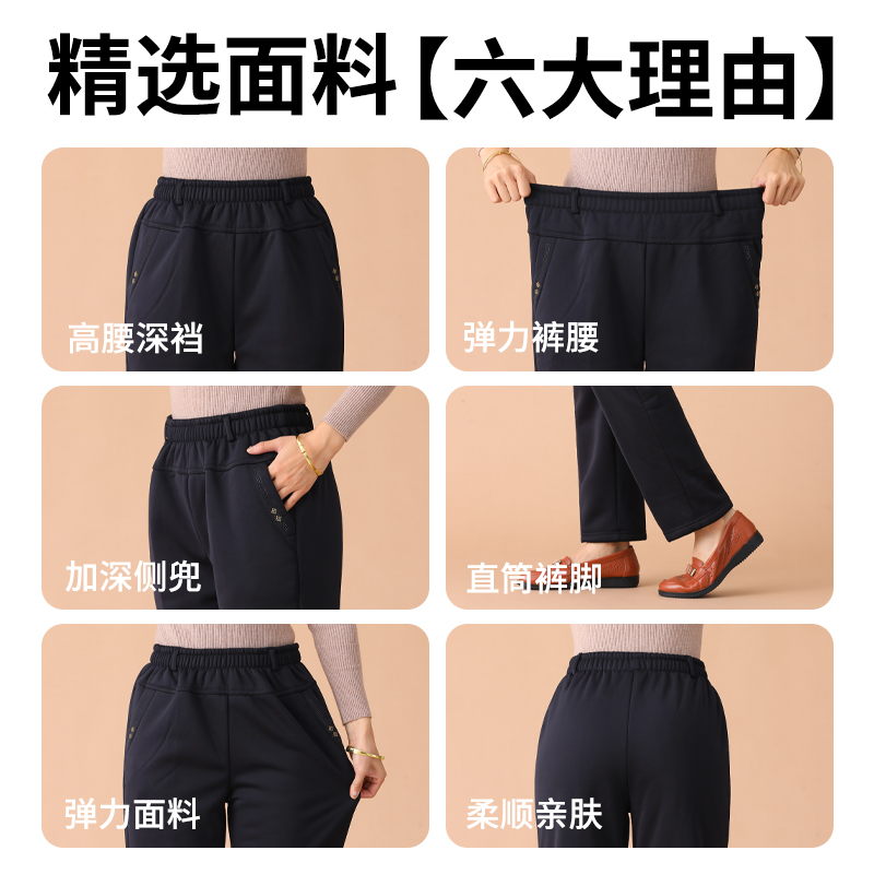 高腰宽松女裤 奶奶加绒裤 老年人加厚直筒休闲裤 2024新款 子女冬季