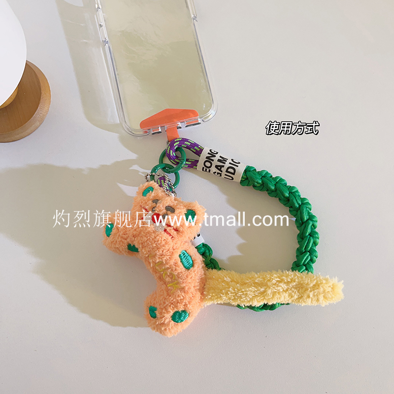 搞怪丑萌卡通波点猫挂件手机壳短款 学生挂链汽车钥匙扣耳机套挂饰耐用结实便携防丢手环 编织尼龙挂绳可爱女款