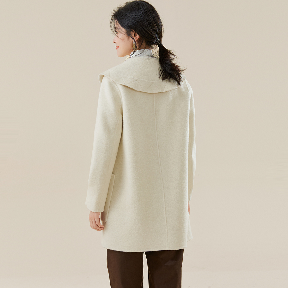RUISHI芮时 重磅驼绒桑蚕丝羊毛慵懒两穿领毛呢大衣女秋冬外套女