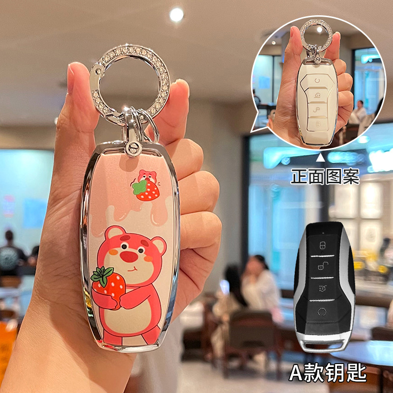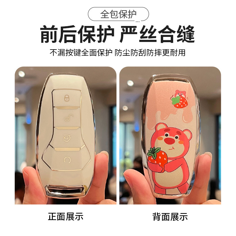 比亚迪海鸥钥匙套卡通草霉熊汉ev海豚宋元 唐秦TPU保护壳包扣