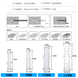 12MM 10MM 8MM 可配自攻螺丝 圆形膨胀螺丝膨胀管涨塞直径6MM