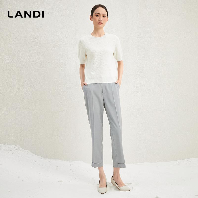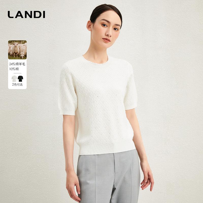 针织衫 LANDI蓝地设计感圆领气质五分袖 女上衣秋新品 商场同款