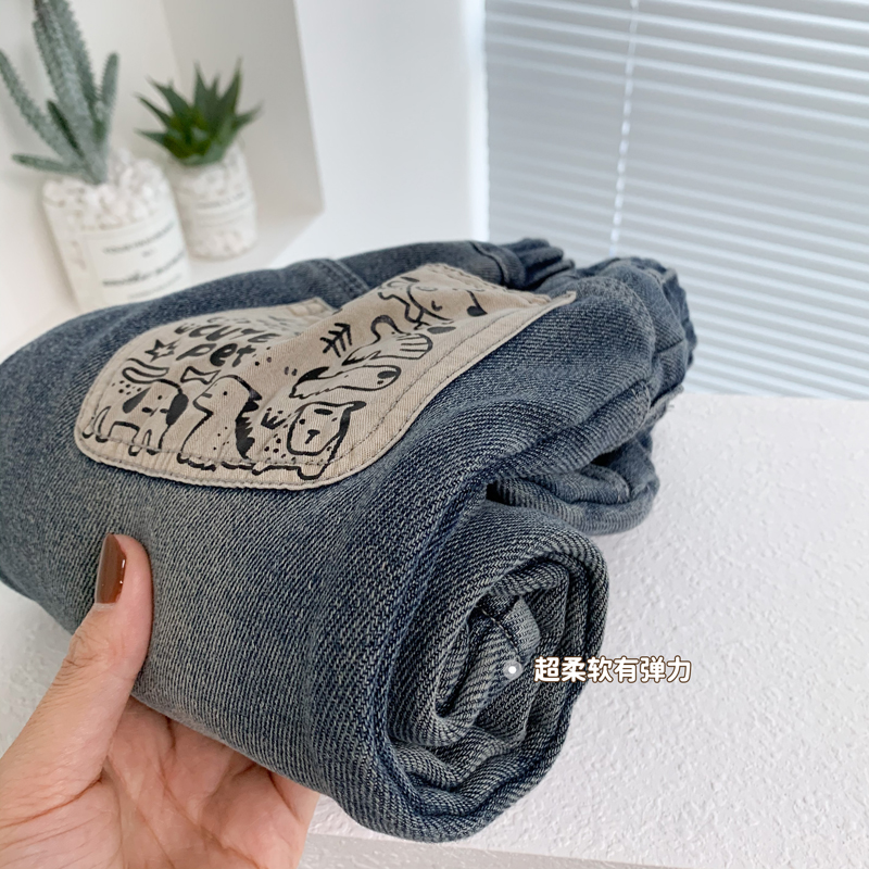 2025新款 长裤 儿童韩版 子小童冬季 弹力柔软一体绒裤 男童加绒牛仔裤