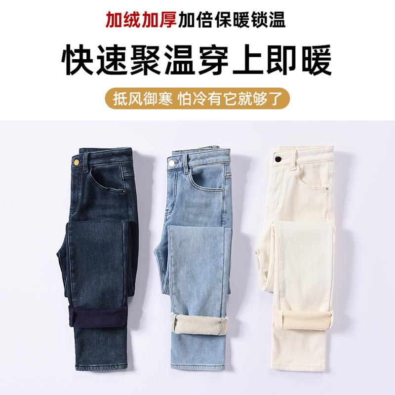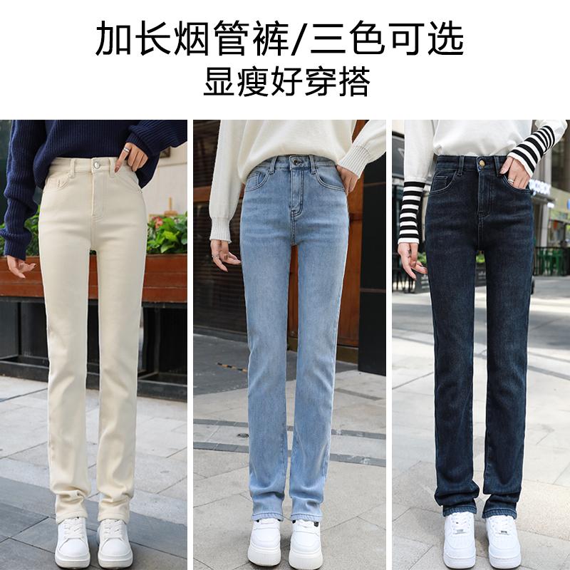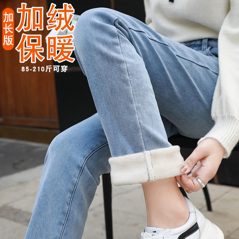 长裤 浅蓝加绒加厚显瘦小直筒牛仔裤 女175加长版 超长高个子烟管裤