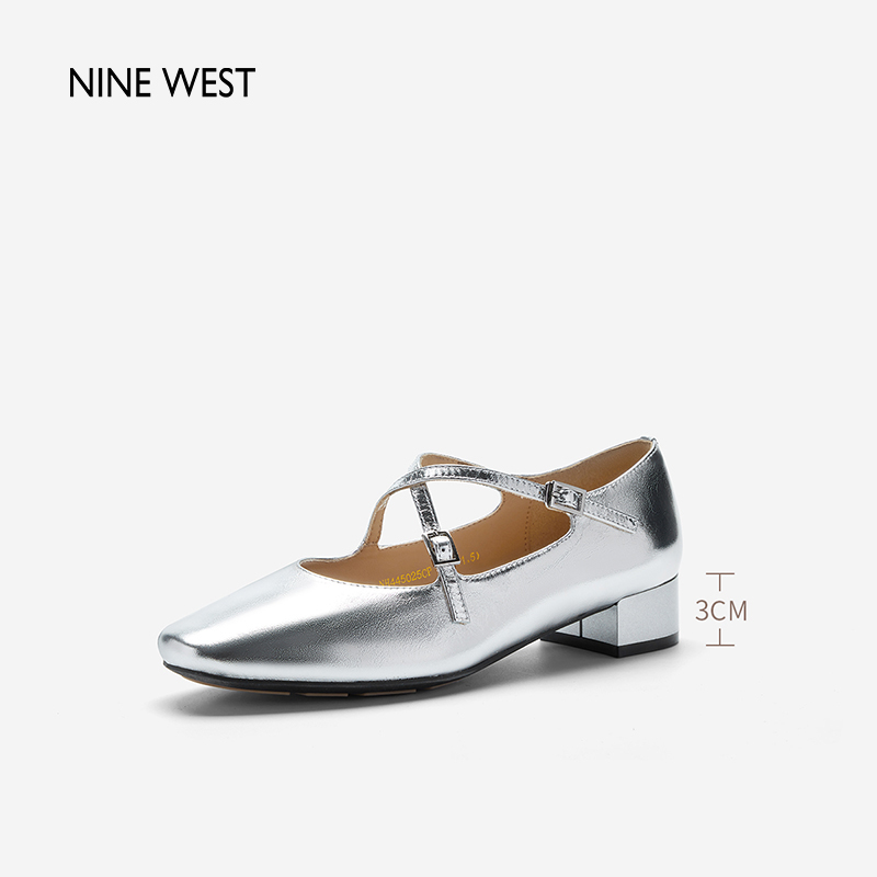 银色小皮鞋 浅口粗跟单鞋 女2025春季 气质圆头蝴蝶结一字带玛丽珍鞋