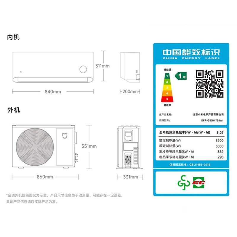 小米米家空调1.5匹新一级能效冷暖变频挂机家用官方 健康风