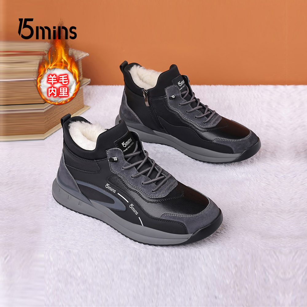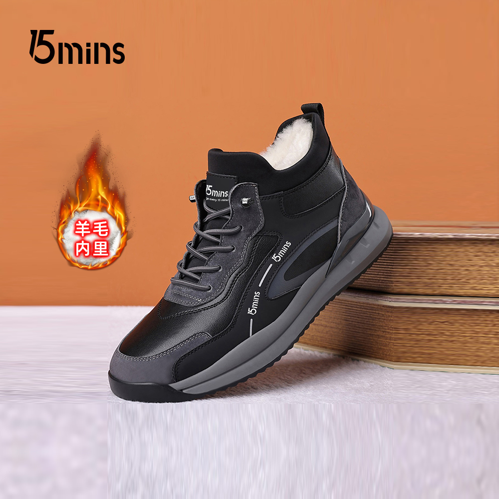 男鞋 安踏加绒加厚保暖高帮大棉鞋 潮流运动鞋 厚底增高休闲鞋 男冬季