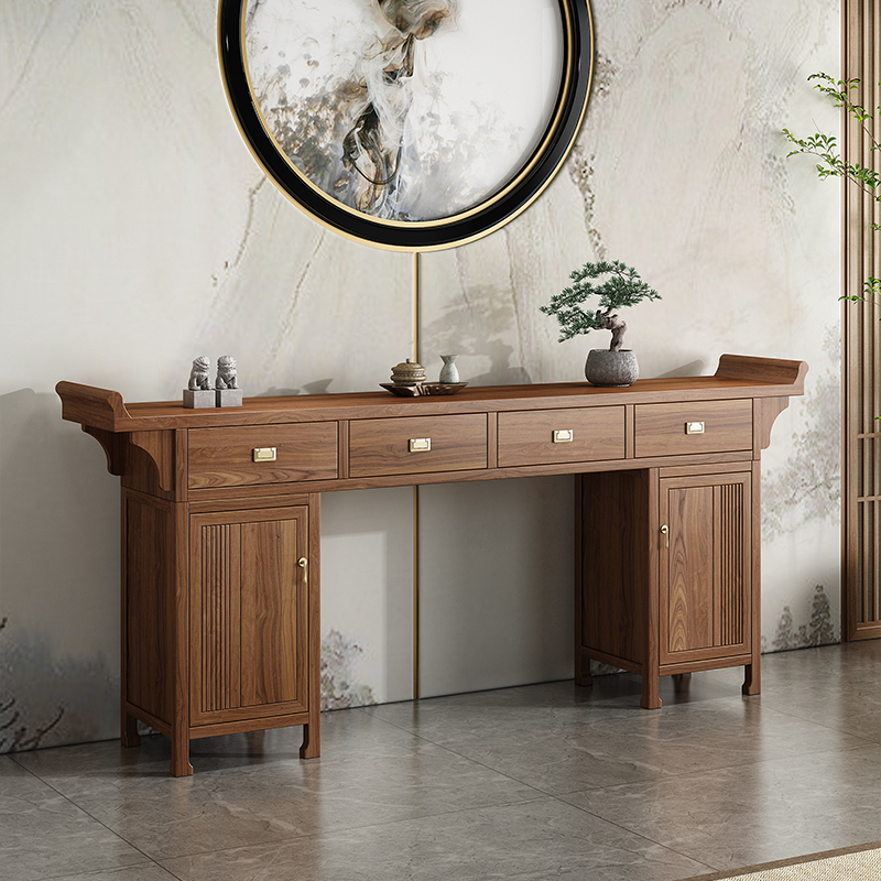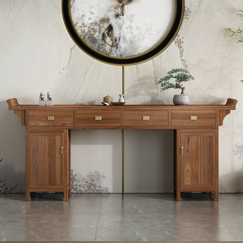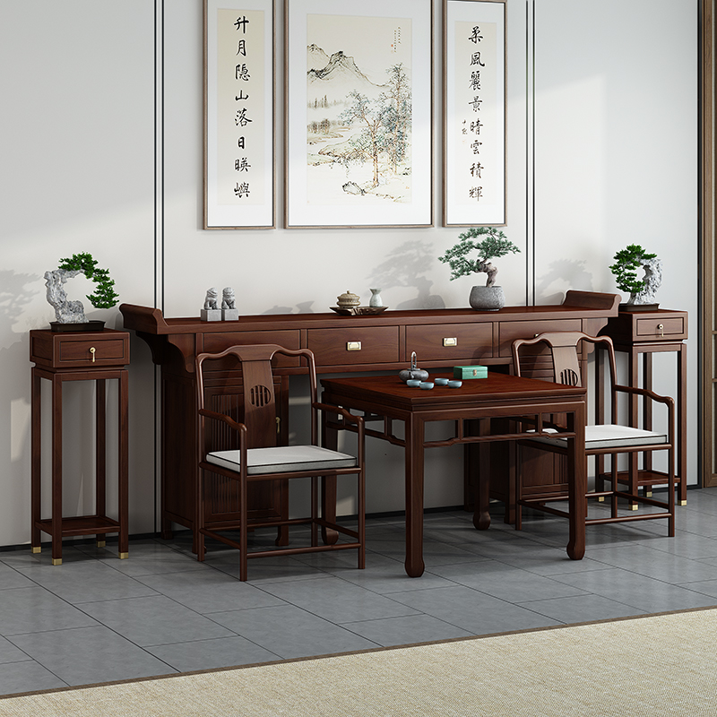 新中式 实木中堂六件套香火桌家用供桌条案农村案台条桌八仙桌神台