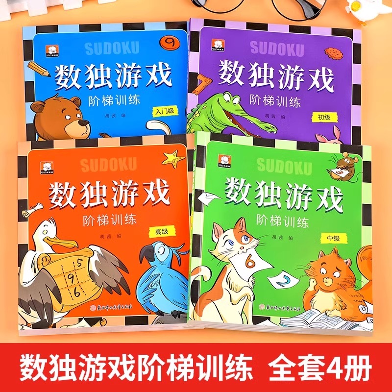 数独游戏阶梯训练全套4册儿童入门幼儿园初级高级智力开发益智游戏书小学生四宫格六宫格九宫格逻辑思维训练题集正版 一年级二年级
