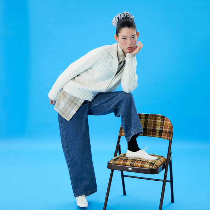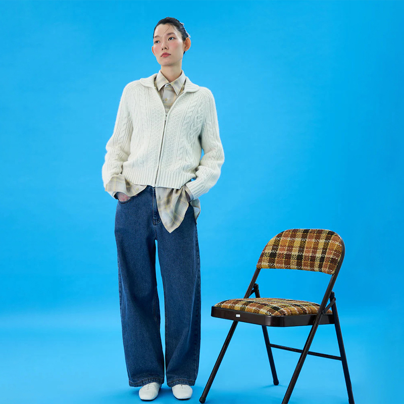 BEANPOLE滨波 秋冬女士商务休闲wide全棉磨毛阔腿牛仔裤