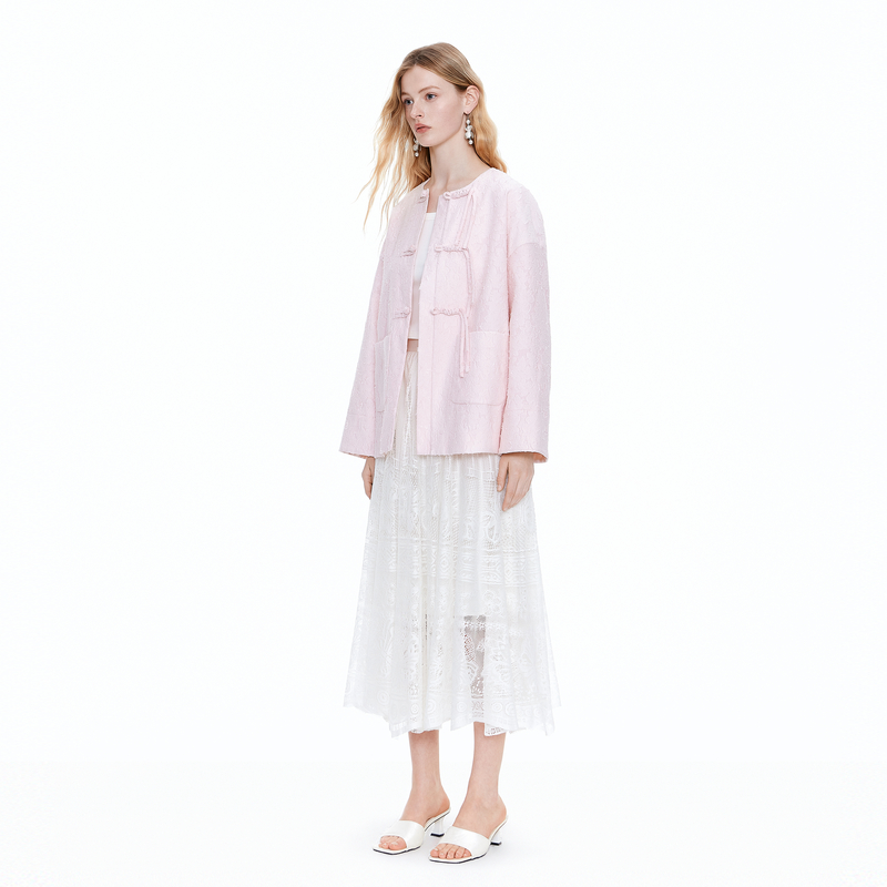 国风时尚 可可尼cocoon新中式 春秋季 粉色外套2025新款 盘扣上衣 女装