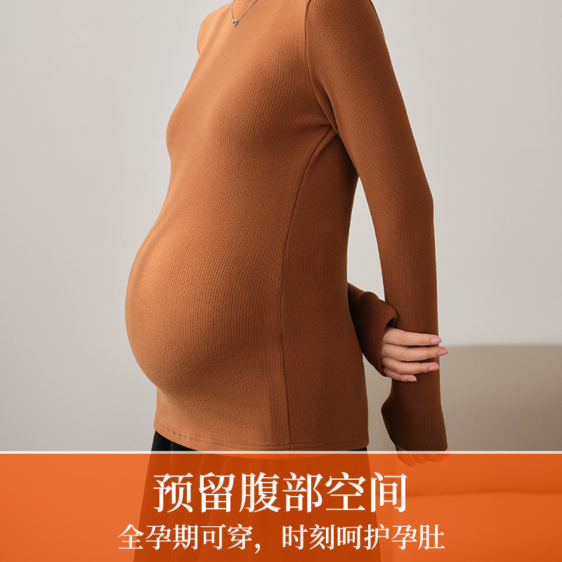 T恤内搭上衣高领加绒保暖打底衫 长袖 秋冬款 婧麒孕妇双面绒打底衫