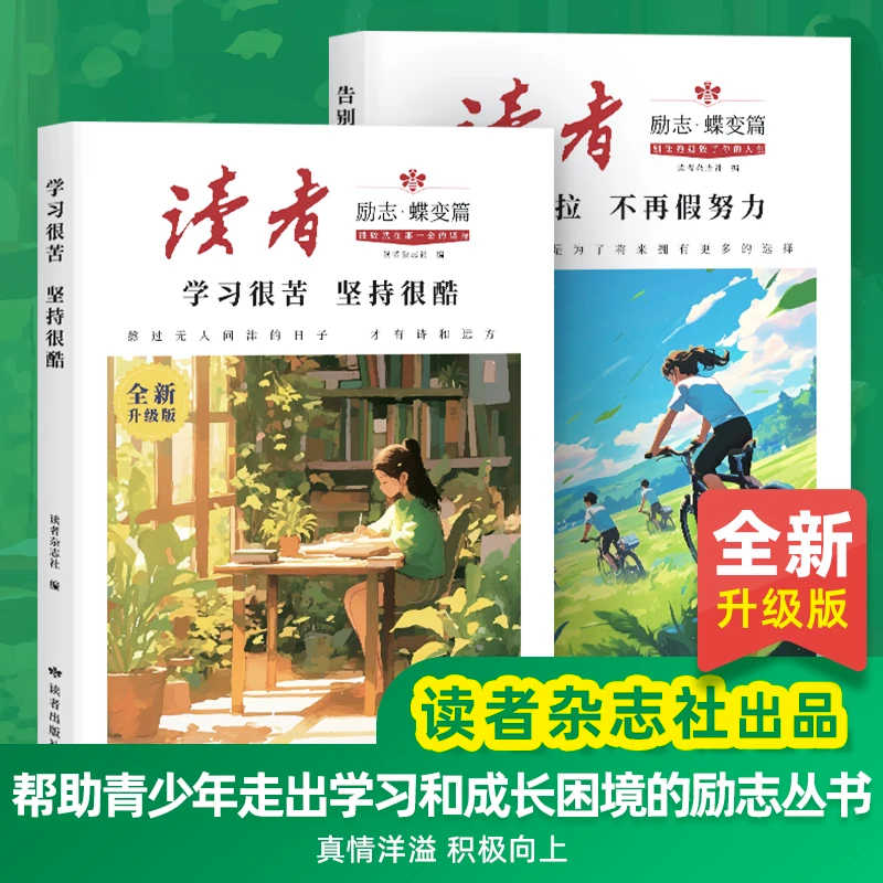 抖音同款 读者励志蝶变篇全2册学习很苦坚持很酷告别拖拉不再假努力鼓舞人心自我与反思成长哲学心灵指导文学文摘阅读课外读书 新版