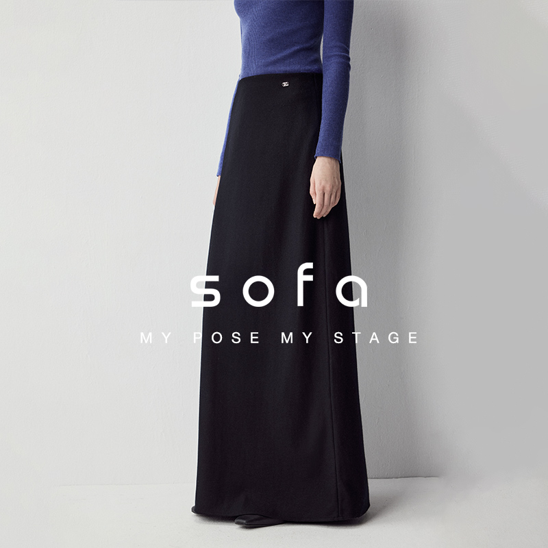 娅丽达松紧腰羊毛醋酸半身裙女秋冬2025新款 黑色裙子开叉直筒长裙