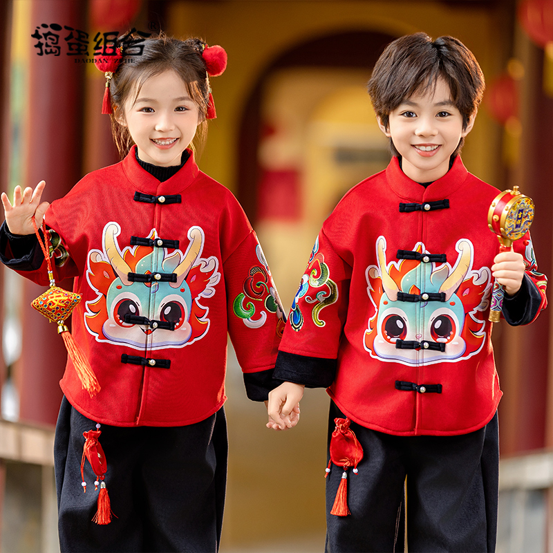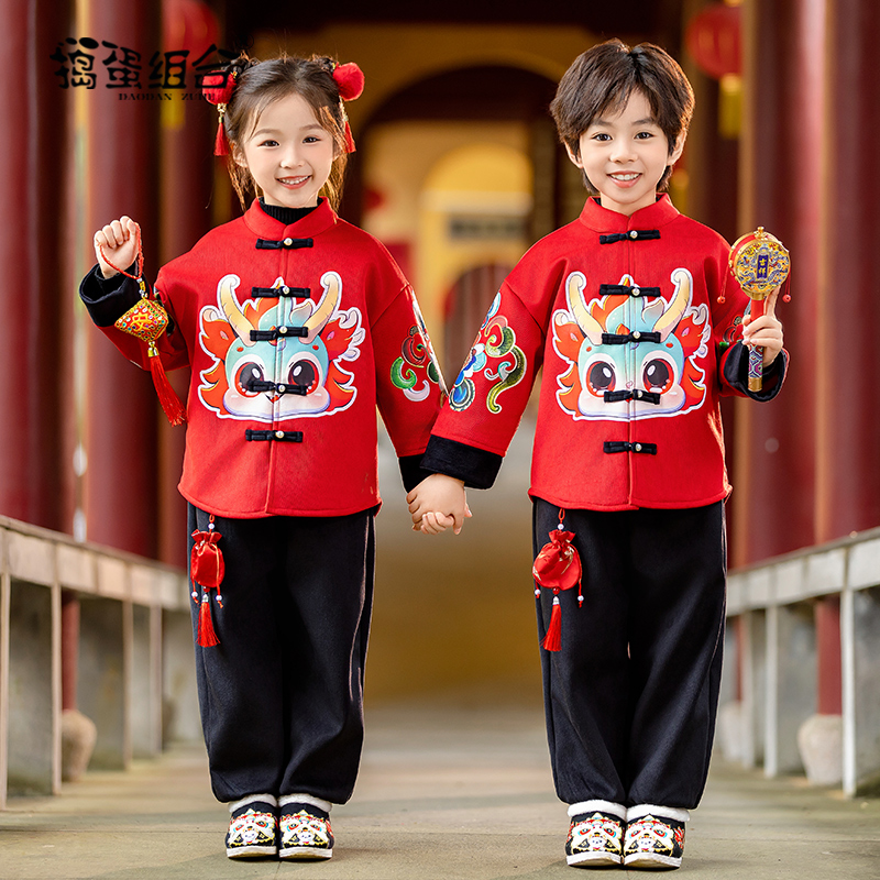 男宝宝周岁礼服女童古装 国风套装 拜年服 唐装 汉服男童秋冬儿童中式
