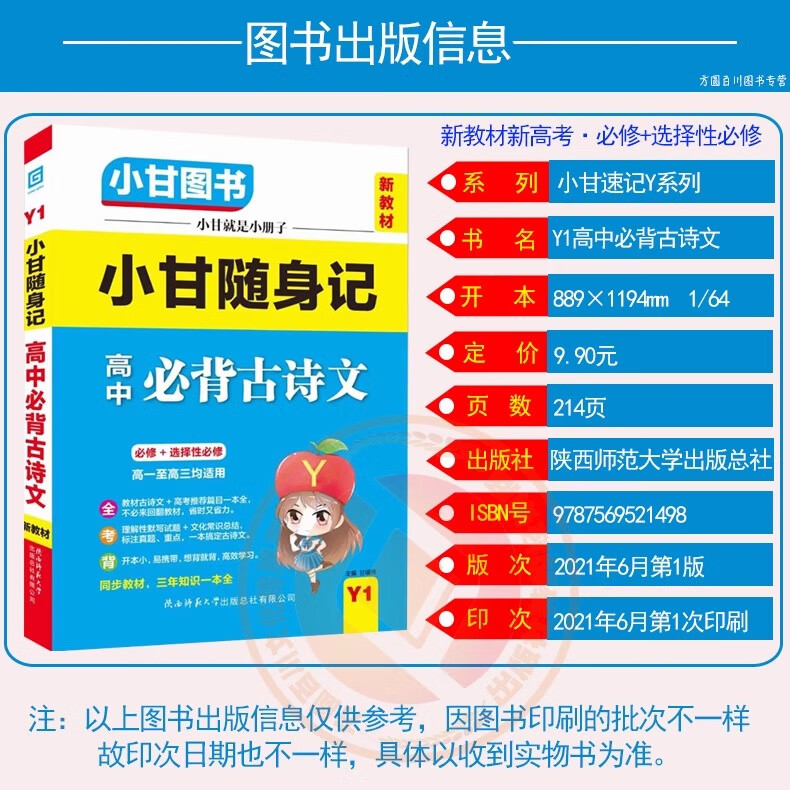 小甘图书新教材 定律 小甘随身记Y系列小字号 高中语文古诗文数学物理化学公式