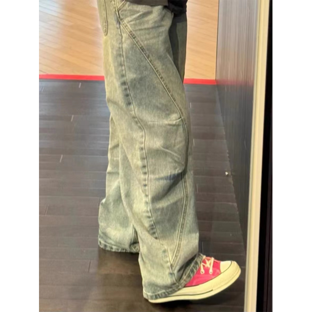 男2025春秋季 阔腿镰刀裤 美式 子伞兵工装 高街vibe裤 复古弯刀牛仔裤