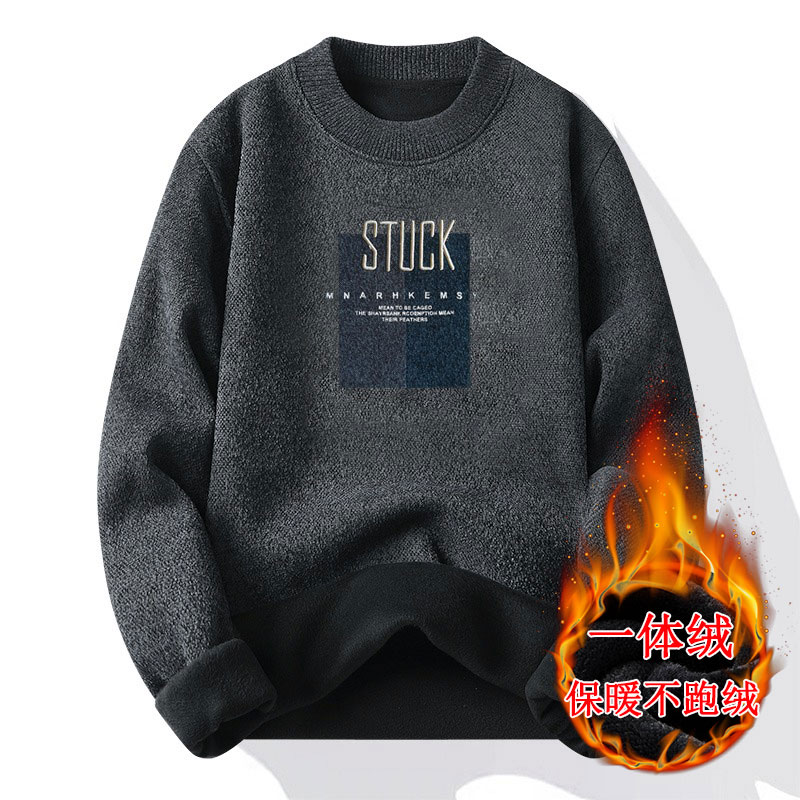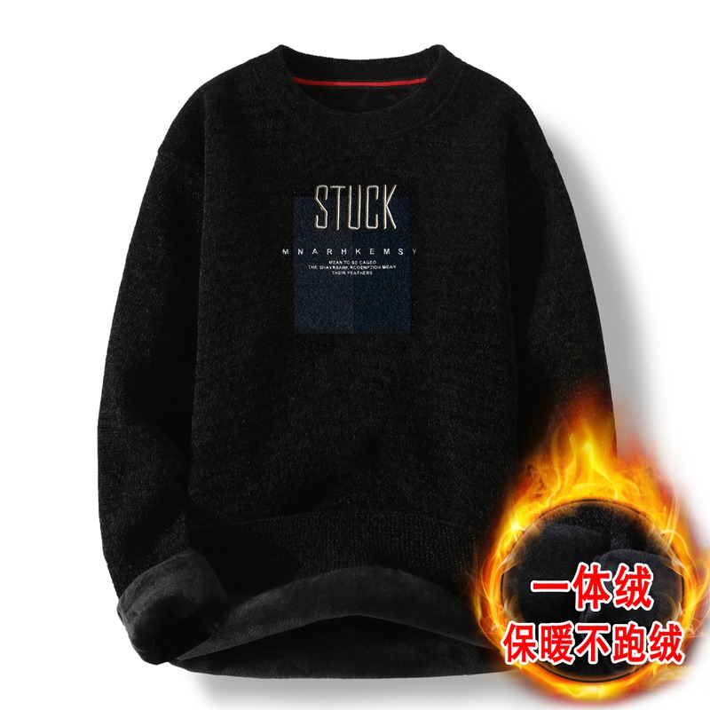 百搭休闲纯色加厚款 潮流针织衫 加厚一体绒男士 雪尼尔毛衣秋冬新款