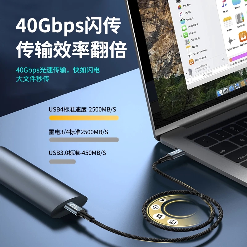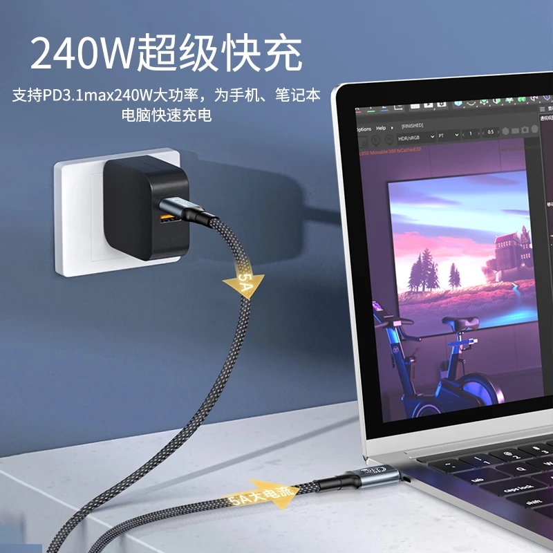 皆有双头快充Type C充电线适用华为笔记本电脑高速数据传输投屏USB4全功能16苹果15pro雷电车载8K手机PD240W