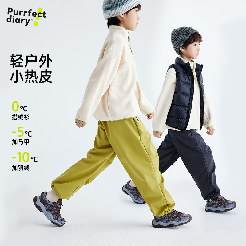 子保暖女童户外冲锋裤 咕噜日记童装 男童秋冬新款 裤 儿童软壳工装