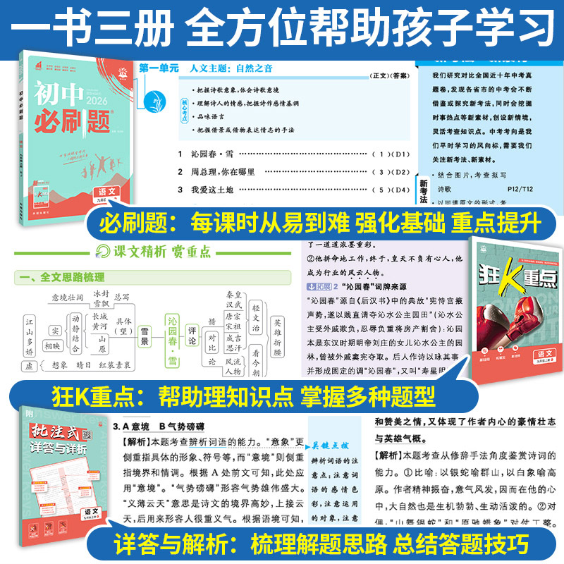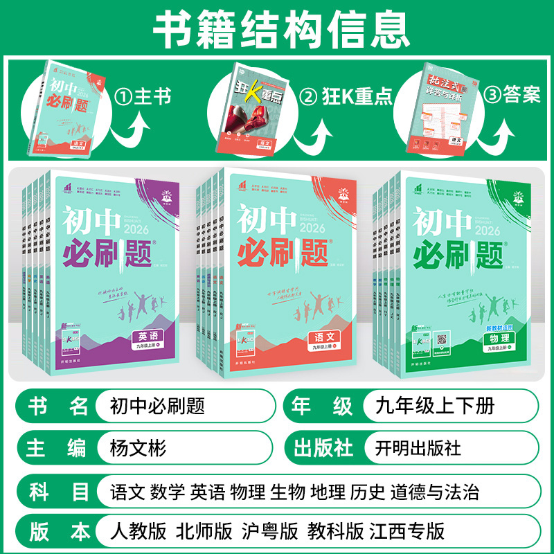 历史地理生物道德与法治人教版 语文英语外研版 教材同步中学教辅资料 初中必刷题七八九年级上册下册数学科学浙教版 浙江专用2026新版