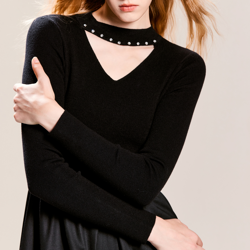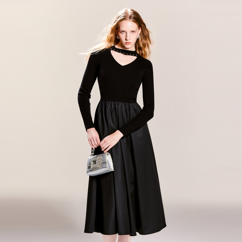 小香风复古气质v领显瘦羊毛连衣裙 高级感法式 朗姿2024年冬季 新款