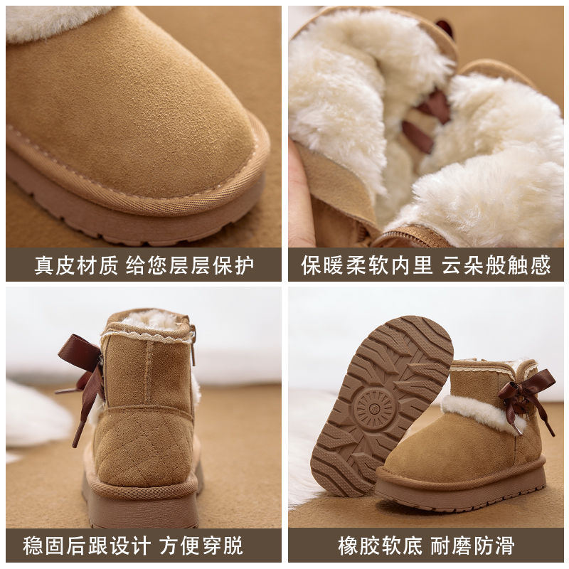 保暖雪地靴二棉女孩宝宝鞋 女童靴子儿童加绒公主短靴2025冬季 新款