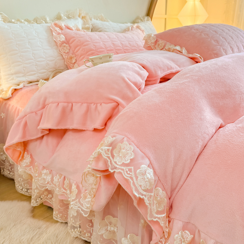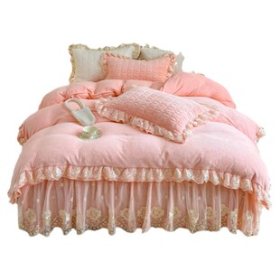 蕾丝花边加绒被套床罩 冬季 公主风保暖牛奶绒夹棉床裙款 四件套韩式