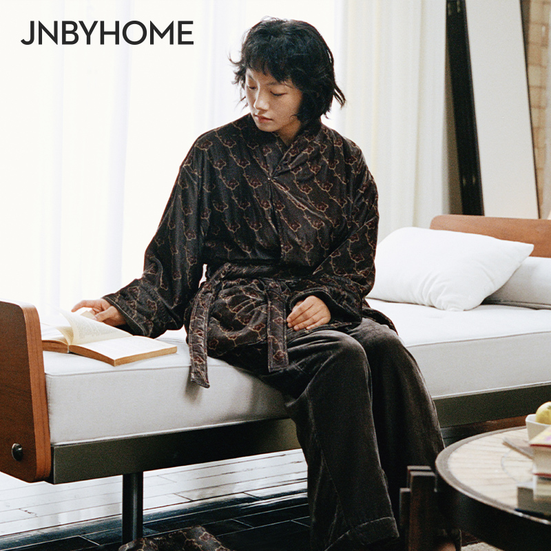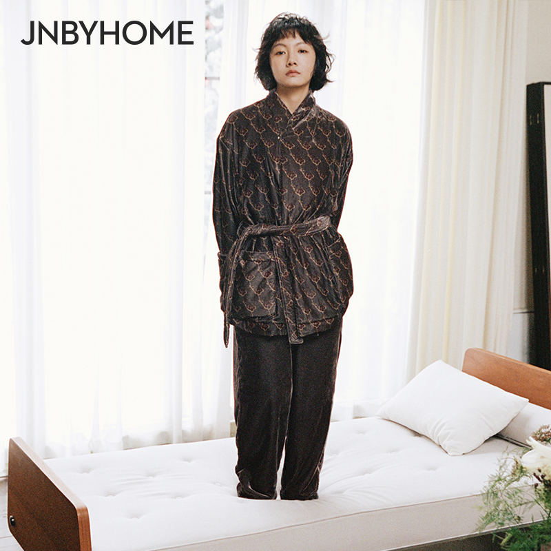 翻领宽松家居服套装 保暖印花开衫 长袖 JNBYHOME江南布衣秋冬新款