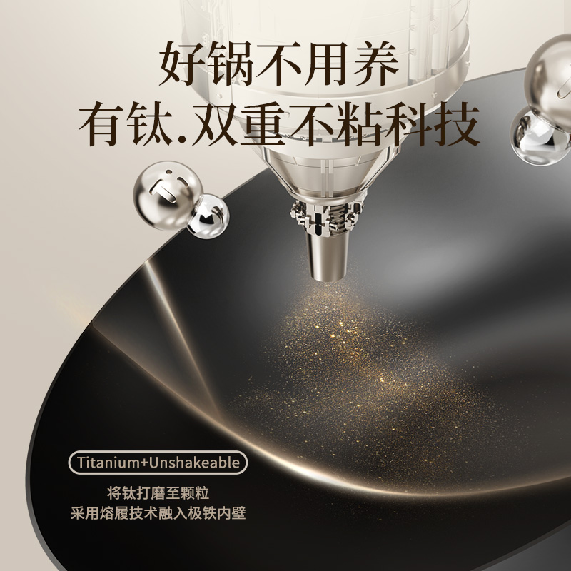 康巴赫有钛铁锅不粘锅无涂层炒锅家用炒菜锅电磁炉燃气专用锅子