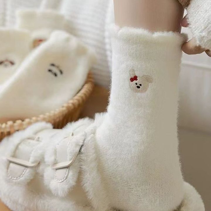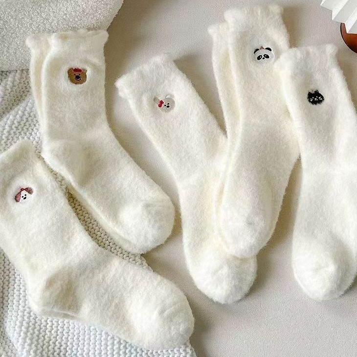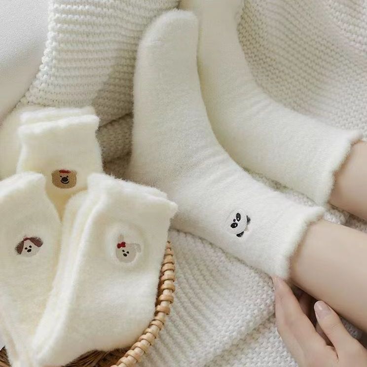 秋冬女袜2025新款 中筒袜女士袜子 粉色可爱少女卡通棉袜搭配小皮鞋