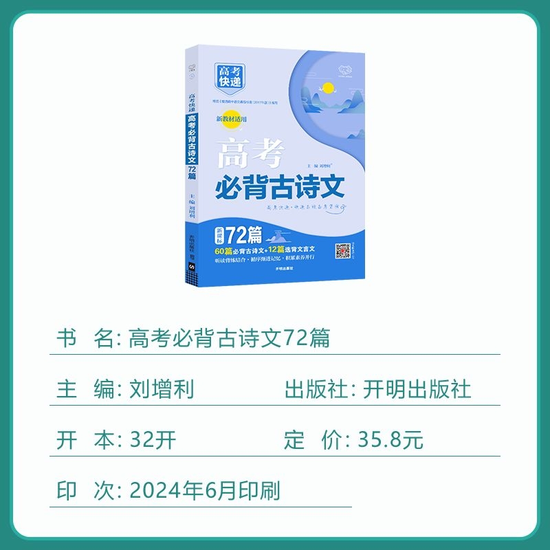 新高考2025新版 高考必背古诗文72篇高中含理解性默写文化常识古诗词文言文背诵手册语文古诗文新教材词汇必背3500解读速记完全训练
