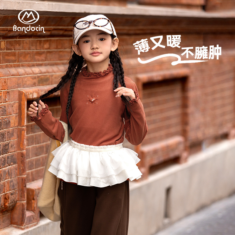 25新款 t恤洋气秋冬装 半度闲女童加绒打底衫 加厚纯色上衣 清仓价